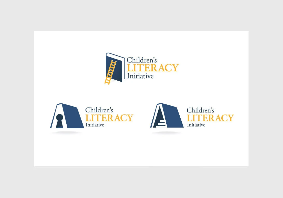 The key to... concept. Literacy is the key to success, life, graduation, or everything. The top key logo won. The board liked the "key" concept best and went with the clean and modern version of that idea.